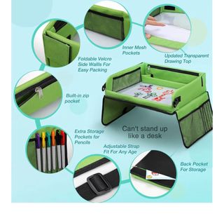 Mesa de actividades portátil, ideal para el coche o viajes. Se pliega fácilmente para guardarla. - Laterales plegables con velcro para fácil empaquetado. - Bolsillo interior de malla. - Superficie de dibujo transparente. - Bolsillo con cremallera incorporado. - Bolsillos extra para lápices. - Correa ajustable para cualquier edad. - Bolsillo trasero para almacenamiento. Precio original 37