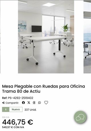 Mesa plegable de oficina Trama 80 de Actiu, con ruedas para facilitar su movilidad. Ideal para espacios de trabajo versátiles. - Estructura metálica. - Superficie de mesa. - Ruedas para desplazamiento.