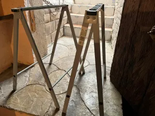Par de caballetes metálicos plegables, ideales para trabajos o como soporte. - Estructura robusta de metal. - Superficie superior con almohadillas de plástico. - Diseño plegable para fácil almacenamiento y transporte. No se hacen envios