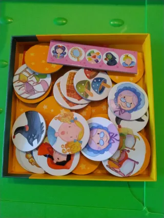 Juego de memoria Il était une fois... de Djeco. - Ilustraciones de cuentos clásicos. - Para niños de 4 a 7 años. - Incluye 40 cartas redondas, muy resistentes.