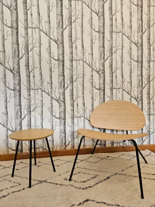 Mesa auxiliar redonda con un diseño moderno y elegante. 40cm diámetro x 40cm alto. *Conjunto de silla y mesa 35€*