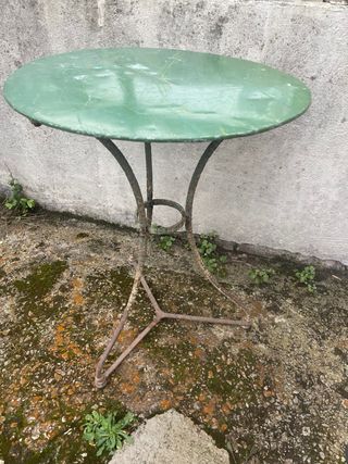 Mesa auxiliar de estilo vintage, perfecta para exteriores. - Tablero redondo de metal. - Base de metal con tres patas. #Muebles #MueblesVintage #MueblesAntiguos #MueblesDeDiseño #MueblesConHistoria #Antigüedades #Coleccionismo #PiezasUnicas #DecoraciónConEncanto #ArteDecorativo #EstiloFrancés #DecoraciónFrancesa #FrenchStyle #DecoraciónVintage #DecoraciónClásica #DecoraciónDeInteriores #ShabbyChic #DecoraciónRústica