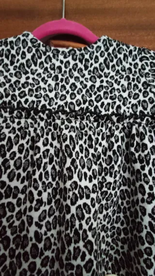 Vestido para niña de 6 meses con un divertido estampado. - Diseño con manga larga. - Estampado de leopardo en blanco y negro. - Cuello redondo.