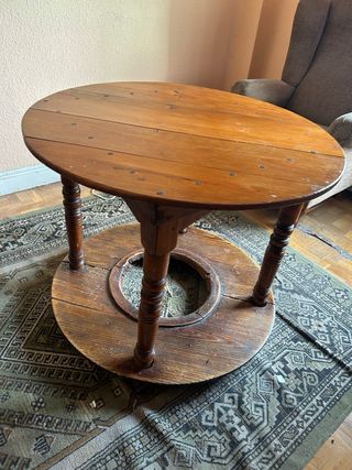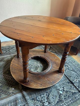Mesa camilla de madera en buen estado. Ideal para espacios reducidos. - Tiene una tapa redonda. - Estructura sencilla y funcional. - Perfecta para cualquier estancia.
