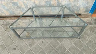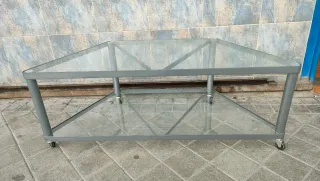 Mesa para TV o centro multimedia de diseño moderno. Estructura de aluminio con 3 estantes de cristal templado muy resistentes. Incluye ruedas para fácil desplazamiento y base giratoria estable. En la parte trasera cuenta con un sistema de gestión de cables muy práctico. Ideal para TV, consolas, reproductores o decoración. 📏 Medidas: Ancho: 94 cm Fondo: 54 cm Alto: 48 cm 💎 En buen estado. 🔌 Se entrega limpia y lista para usar. ----------------------------------------------------------------------------------------------------- Mueble, comedor, cuarto, dormitorio mesa, mesa auxiliar, hogar, casa, oportunidad, oferta,