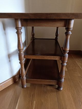 Mesa madera con dos estantes y dos cajones. Para TV, Microondas, etc. con ruedas.