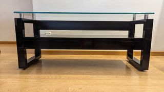 ~Mesa color gris para television con dos valdas de cristal y ruedas. ~Mesa de centro baja de cristal, patas negras, tiene algun desconchado. ~Mesa television negra con ruedas. ~Mueble de madera negro para libros con dos estantes. ~Mesa de tv de madera. Todo por 50€. Tambien por separado.
