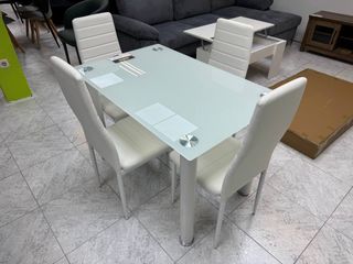 Consigue este conjunto de comedor nuevo de fábrica. Mesa de cristal y 4 sillas blancas en su embalaje original precintado. Estilo sofisticado, estructura robusta y fácil limpieza. Perfecto para pisos modernos que buscan calidad. 📲 639*116*436 - Judith ☎️ ✅Pagos y envios a contra - rembolso ✅ ✅Envios de 1 a 4 dias. ✅ ✅Envio de factura. ✅ ✅Garantia de 2 años.✅ ✅Productos completamente Nuevos ✅ ☎️ Tienes dudas? , no dudes en comunicarte con nosotros, atendemos 24HRS.☎️