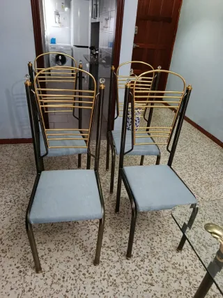 Mesa de Cristal y Sillas Doradas