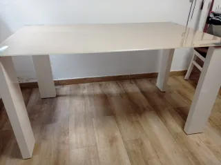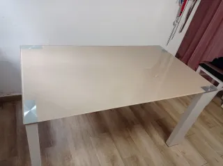 Elegante mesa con un diseño moderno y minimalista. -Mesa de diseño. - Tablero de cristal. 80 de ancho. 140 de largo. Interesados hablar al 625602490.