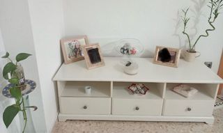 Mesa auxiliar con diseño moderno y funcional. - Estructura principal en madera. - Superficie superior de cristal. - Acabado en blanco. - tiene un cajón. -medidas 90 x 90. - tienda local Mueble de salón. - aglomerado blanco en buen estado. - medidas 1,45 x 49. - ikea. La persona interesada lo tiene que recoger en Sevilla, y buscarse transporte para llevarlo. Se venden montados. Más información pregunten. Se venden por separado, consultar precio.