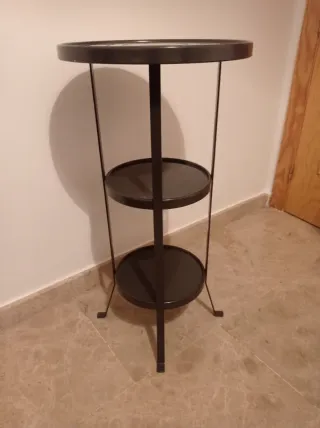 Mesa auxiliar con un diseño moderno y elegante, perfecta para cualquier rincón. - tengo dos iguales, venderia las dos conjuntas o separadas - Tablero redondo con borde elevado. - Patas metálicas cruzadas para mayor estabilidad. - Acabado liso y uniforme. - Una 15, dos 25