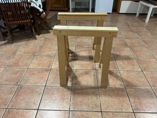 Par de soportes de madera para usar como mesa auxiliar o caballetes. - Construcción robusta de madera. - Diseño en forma de A para mayor estabilidad.