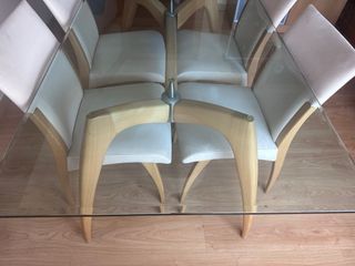 Mesa de comedor cristal y madera haya 4 sillas