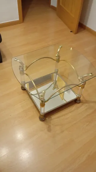 Mesa de centro cristal y metal dorado