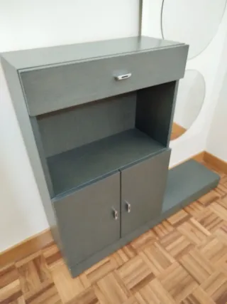 Mueble y mesa azul de madera