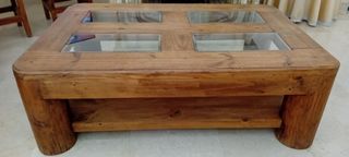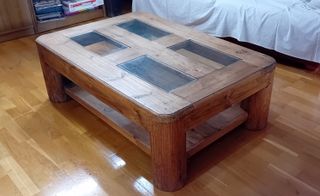 Mesa baja rústica madera y cristal