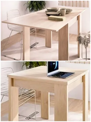 Vendo mesa de cocina extensible con cajón frontal. Medidas: Cerrada: 80 × 40 cm Extendida: 80 × 80 cm Altura: 75 cm La extensión funciona correctamente. Estado usado, tal y como se ve en las fotos. Recogida en ciruelos. No se envía. El comprador se encarga de la recogida.