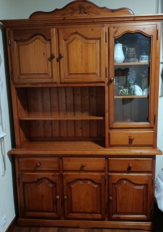 Mesa, Sillas y Aparador Comedor Madera - Aparador con puertas y cajones. La vitrina se puede separar. 220×150×43 - Mesa de comedor extensible 90-130 (cristal opcional). - Sillas a juego.