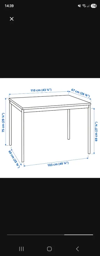 Mesa de comedor modelo Sandsberg de Ikea. Sus dimensiones son 110 cm de largo por 67 cm de ancho. Si es en Coruña te la llevo. Se vende por cambio de moviliario.