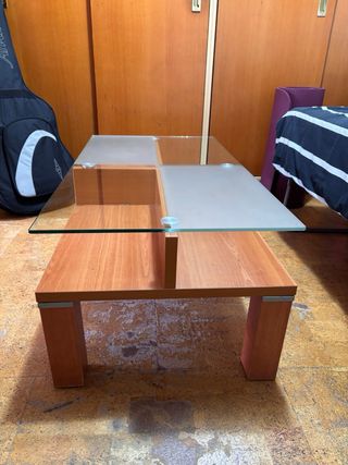 Mesa de centro cristal y madera