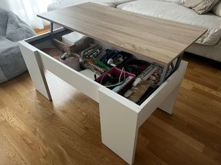 Mesa de centro elevable madera y blanca