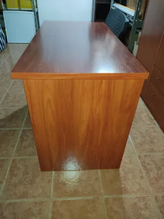 Mesa de despacho, color cerezo. Muy buen estado. Tablero de 3 cms. Sólida. Tamaño: 120 x 60 x 75