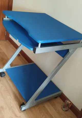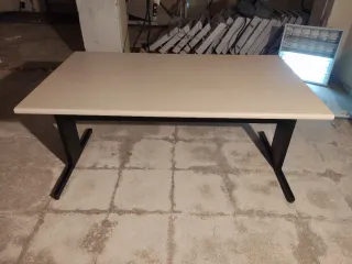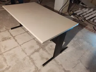 Mesa de escritorio con un diseño moderno y funcional. Combina una superficie de madera con patas de metal. A recoger en Cánovas (Caceres)