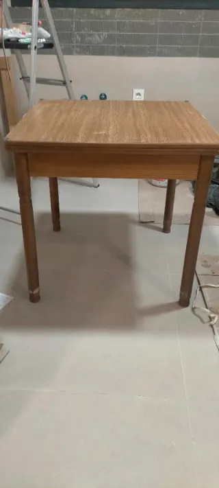 Mesa de comedor extensible, con base para radiador. Ideal para piso de alquiler, en buen estado. Mide 80x80 y abierta 160x80 cms