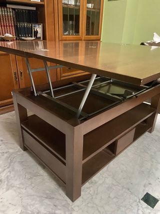 Mesa de centro con superficie elevable y compartimento de almacenamiento. ( Precio negociable ) - Diseño moderno y funcional. - Estructura robusta de madera. - Mecanismo de elevación suave. -Dos cajones a lo largo en la parte inferior -Muy cómoda para el salon/comedor