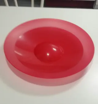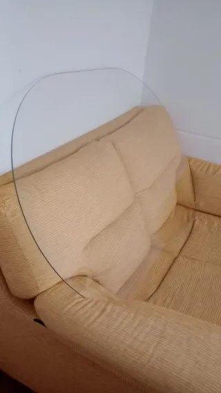 Superficie de cristal con forma ovalada. - Borde pulido y redondeado. 98 cm de ancho. 1,38 cm de largo.