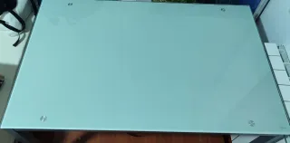 Mesa de comedor Color marrón y blanco (cristal) Medidas: 130 cm. largo x 85 cm. ancho x 29,5 cm alto Posibilidad de poder entregar en mano en Cáceres.
