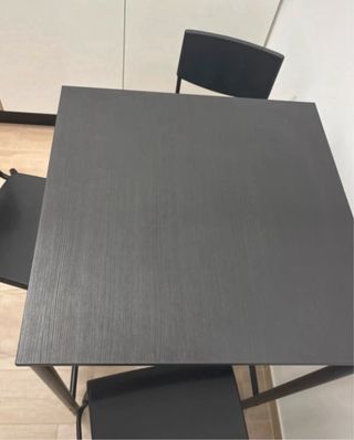 Conjunto de mesas y sillas ideal para bares o restaurantes. Este lote incluye 4 sillas. - Diseño moderno y funcional. - Tableros de madera clara. - Estructura metálica negra.