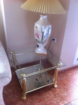 Se venden dos mesas auxiliares con estructura metálica dorada y sobre de cristal. - Medidas mesa de centro: 120x70x42cm. rincon 60x60x42
