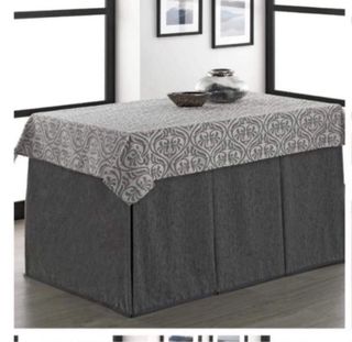 Mesa camilla rectangular con un diseño elegante. - Cubierta con estampado damasco. - Faldilla a juego.70 x 1,20 cm -cristal -tarimilla