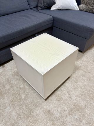 Mesa auxiliar con un diseño moderno y elegante. - Tablero superior desmontable en acabado piedra. - Base de madera clara con textura. - Medidas: 45x45x43cm