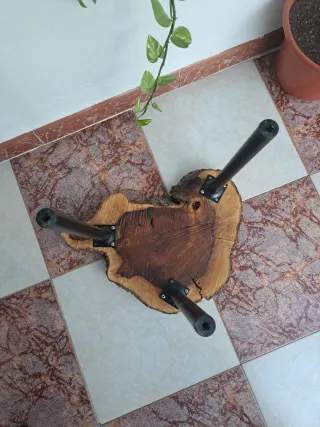 Mesa auxiliar con un diseño rústico y moderno, perfecta para añadir un toque natural a tu hogar(procede de tronco natural) - Tablero de tronco de madera con corteza. - Patas de metal negro.