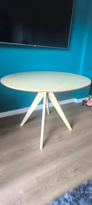 Mesa de cocina con un diseño sencillo y funcional. - Acabado en tonos madera natural. - Patas robustas para mayor estabilidad.