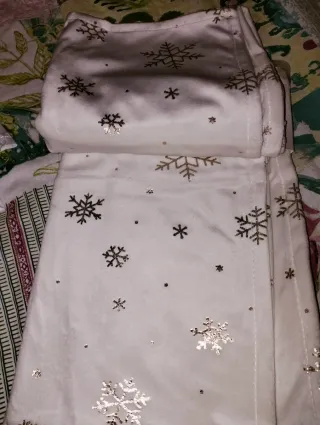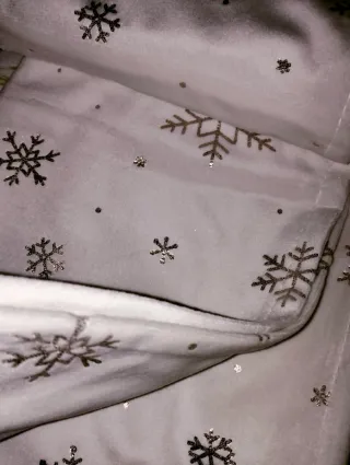 Elegante camino de mesa con diseño de copos de nieve. Nuevo .Medida 135x180cm - Material: terciopelo. - Color: blanco y dorado.