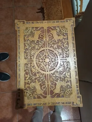 Conjunto de mesa auxiliar y revistero con un diseño intrincado.estilo chippendale años 40 - Elaborado en madera