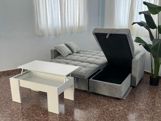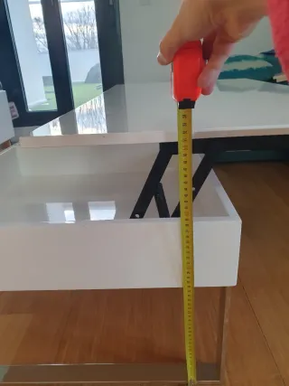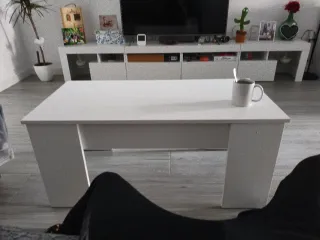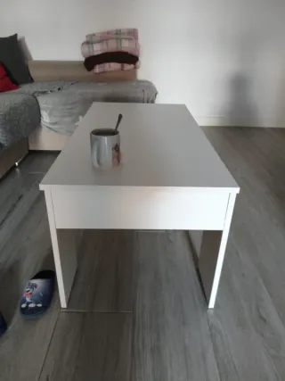 Mesa de centro recién comprada, SIN USAR. Ya está montada. Tenemos embalaje original, instrucciones, todo. La vendemos porque no nos encaja por las medidas y no nos devuelven el dinero. Es elevable y extensible, ganas el doble de espacio!!! Además tiene almacenamiento oculto.