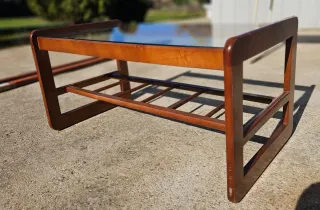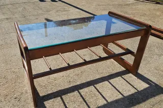 Mesa de centro con un diseño moderno y funcional, perfecta para cualquier sala de estar. - Estructura principal de madera. - Superficie de cristal. - Diseño plegable para fácil almacenamiento.