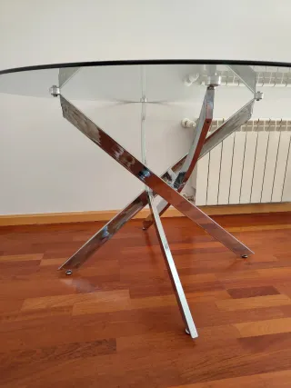Mesa redonda cristal y acero