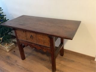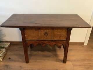 Mesa de madera estilo castellano antiguo con herra