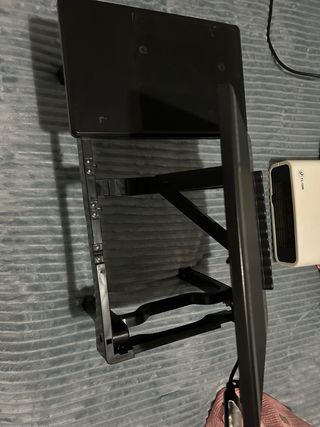 Mesa soporte para ordenador con un diseño moderno y funcional. Ideal para mejorar la ergonomía al usar tu portátil. - Acabado en color negro. - Fabricado en plástico resistente.