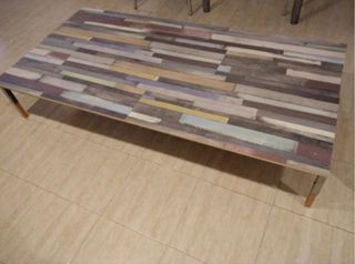 Mesa baja con un diseño único y original, perfecta para añadir un toque rústico a tu hogar. - Estructura fabricada con tablones de madera. - Combinación de colores variada y llamativa.