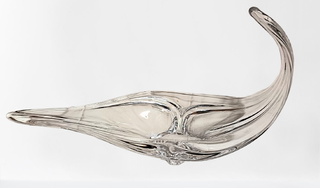 Elegante frutero o centro de mesa de cristal con un diseño escultural y moderno. Su transparencia permite apreciar su forma única. - Pieza decorativa de cristal. - Diseño curvo y orgánico. - Ideal como frutero o centro de mesa.