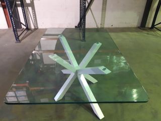 Elegante mesa de diseño Argo con sobre de cristal y base metálica. - Diseño moderno y vanguardista. - Patas en forma de estrella.