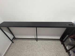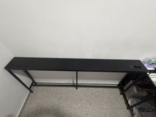 Elegante mesa consola con un diseño moderno. - Estructura de metal resistente. - Tablero de madera. - Acabado en color negro. - Toma de corriente integrada con 2 enchufes y 2 usb. - Cable de 1,5 m de largo. Precio negociable. Escucho ofertas serias.