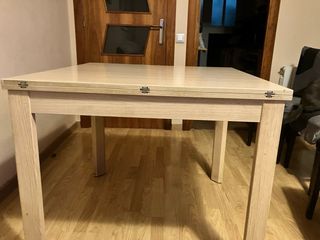 Mesa auxiliar de madera con un diseño funcional. Se puede usar cerrada ocupando poco espacio o abrirla fácilmente para ganar superficie cuando se necesita. Está en buen estado general, con señales normales de uso propias del paso del tiempo, pero bien cuidada. Muy estable y resistente. Ideal para cocina, comedor pequeño o como mesa auxiliar. 📏 Medidas cerrada: 100 x 65 x 77 cm 📏 Medidas abierta: 155 x 65 x 77 cm 📍 Importante: se encuentra en un segundo piso sin ascensor, recogida a cargo del comprador. - Mesa sólida